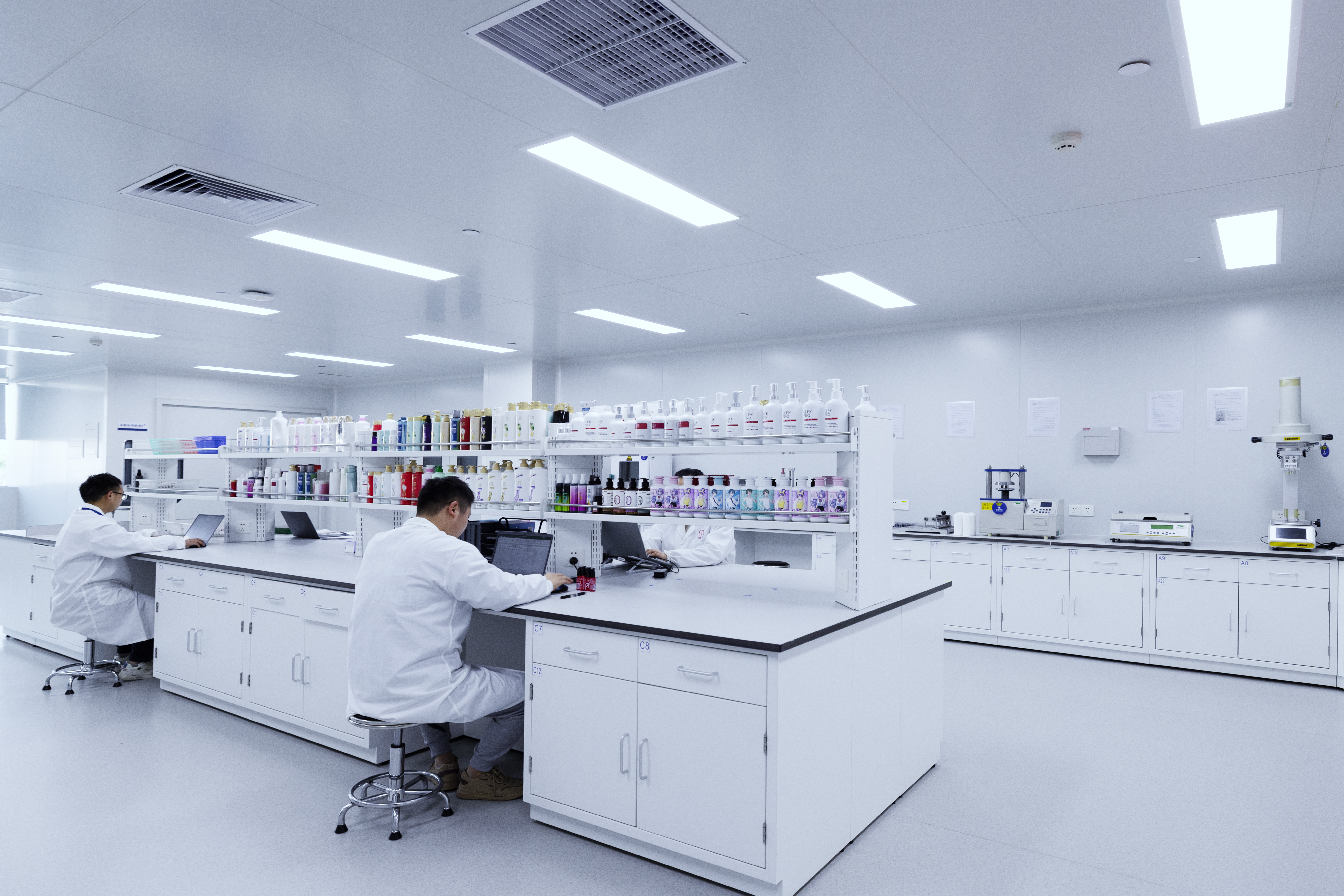 研發(fā)中心總占地2000平方米,涵蓋護(hù)發(fā)護(hù)膚開(kāi)發(fā)、包材開(kāi)發(fā)、功效測(cè)試、儀器分析、微生物研究、香氣評(píng)估、中試車間等12個(gè)功能實(shí)驗(yàn)室以及消費(fèi)者調(diào)研室和美發(fā)沙龍?bào)w驗(yàn)區(qū)。